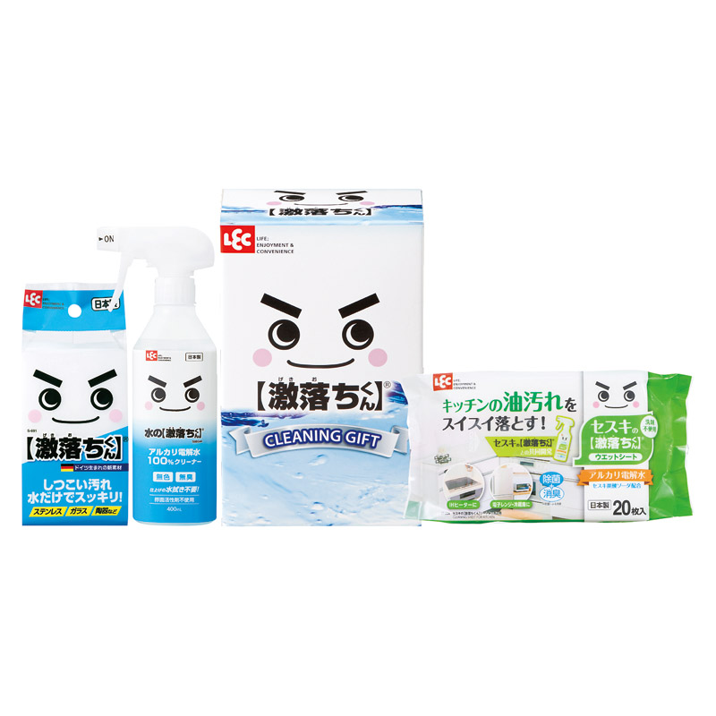 【内容】 レック水の激落ちくん(約400ml)、レックセスキの激落ちくんシートキッチン用(20枚入)、レック【激落ちくん】×各1