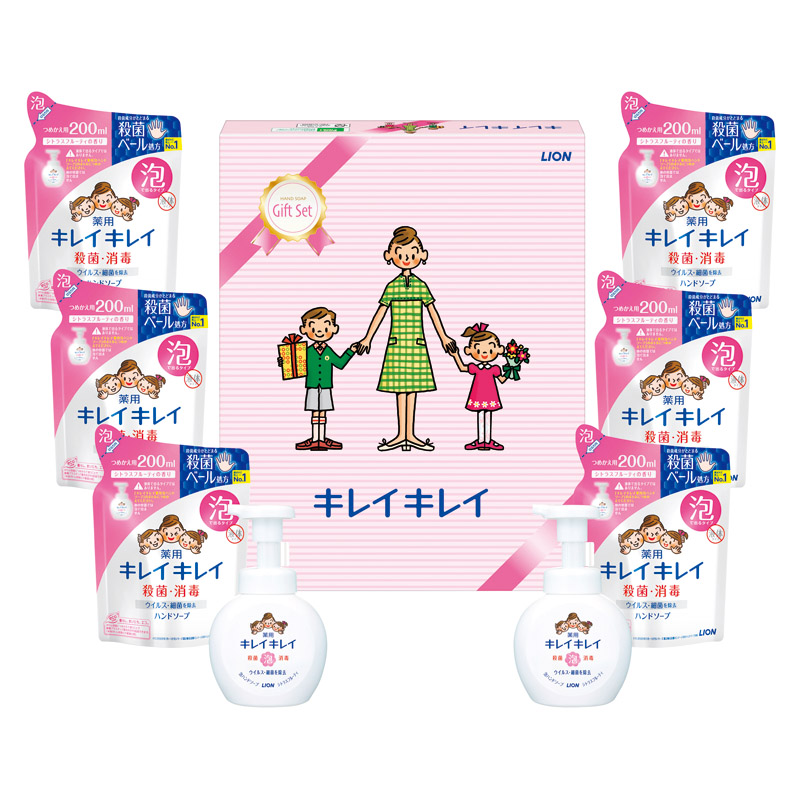 【内容】 キレイキレイ薬用泡ハンドソープ(約250ml)×2、キレイキレイ薬用泡ハンドソープ詰め替え(約200ml)×6