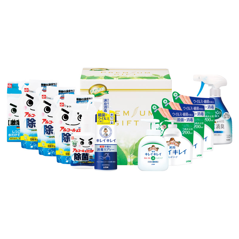 【内容】 ライオンキレイキレイ薬用液体ハンドソープ(約250ml)、ライオンキレイキレイ薬用手指の消毒スプレー(約350ml)、レック除菌の激落ちくん(約320ml)、レック【激落ちくん】、花王リセッシュ除菌EX香りが残らないタイプ(約370ml)×各1、ライオンキレイキレイ薬用液体ハンドソープ詰め替え(約200ml)、レック除菌の激落ちくん詰め替え(約300ml)×各3
