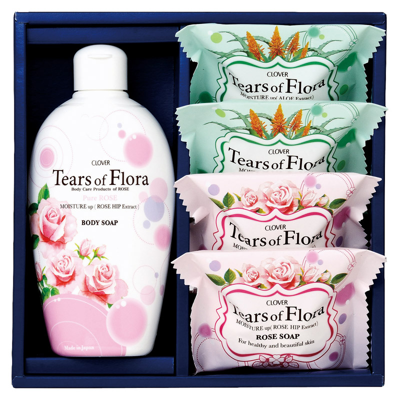 【内容】 アロエ石鹸(約70g)、ローズ石鹸(約70g)×各2、ローズボディソープ(約250ml)×1
