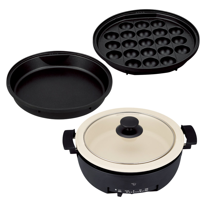 約8号サイズの「土鍋風なべ」。 土鍋風なべは、直火OKで下ごしらえも簡単。 「区切り線つきたこ焼きプレート」と「遠赤すき焼きなべ」付。 丸洗いできる「本体ガード」。 ヒーターセットが簡単に取り外せるので本体ガードも丸洗いできます。
