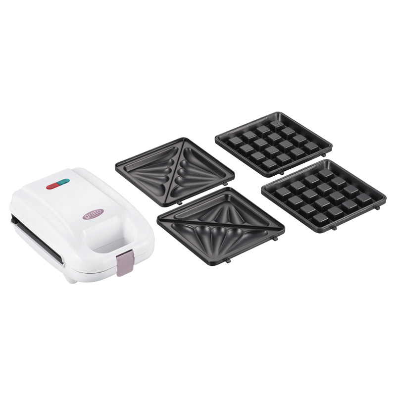 食パンのミミまで焼けるホットサンドプレートとワッフルプレートの2枚組。 着脱式なのでプレートの丸洗いもOK。 朝食やおやつタイムまで色々な場面で大活躍の1台。