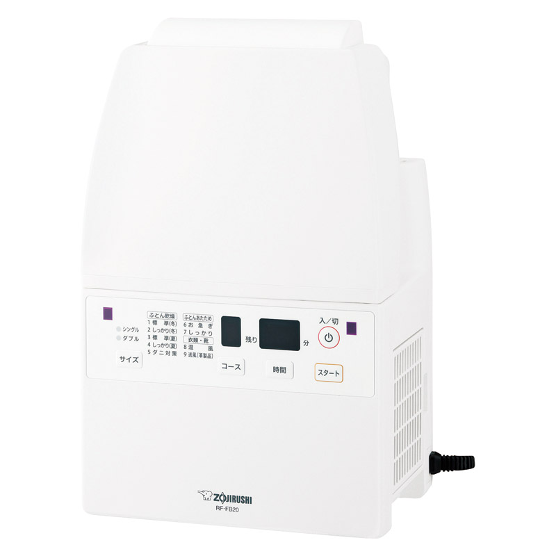 象印史上最大風量。 ツインファンでスピード乾燥。 衣類や靴の乾燥に便利な角度調整ノズル、ふとんのサイズに合わせて時間選択ができる「サイズ」キー。 収納しやすいコンパクト設計。 「羊毛」「羽毛」「綿」「化学繊維」などのふとんを乾燥。 残り時間を1分単位で表示する「デジタルタイマー」。 「ふとん検知センサー」付。