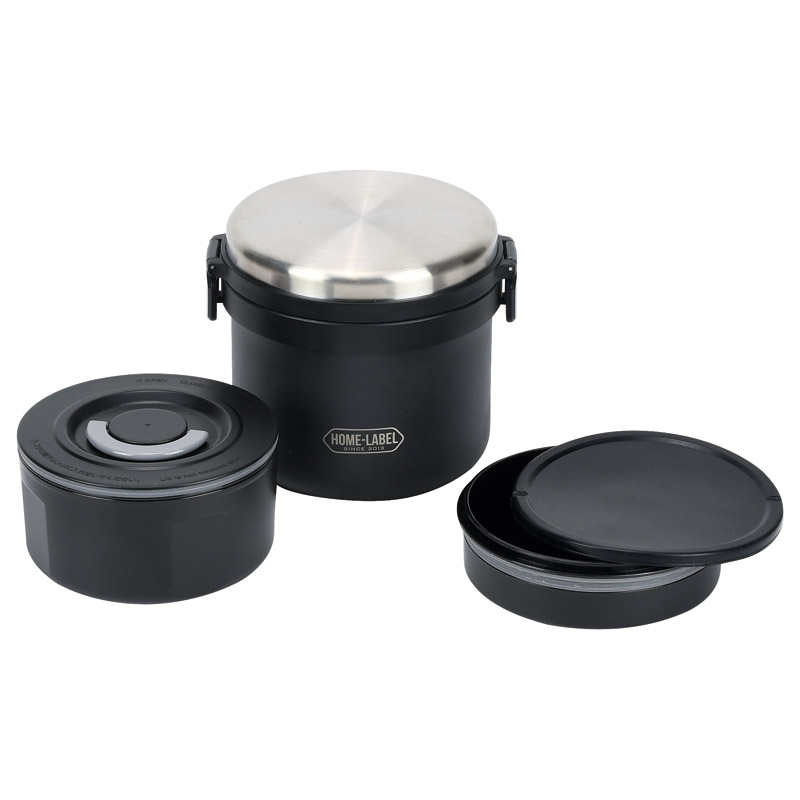 ホームレーベル 全真空ステンレスランチジャー 1リットル ブラック