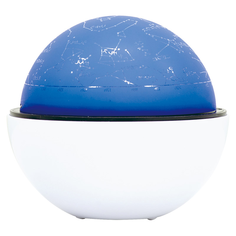 星座線、星座名入りで学習用としてもお使いいただけます。 ドームカバーを使って壁面投影が可能。 ○投影恒星数(北天):316個(1~4等星、星座名、星座ライン入り)○連続作動時間:約24時間(アルカリ乾電池使用時)○最大投影距離:約2.5m。