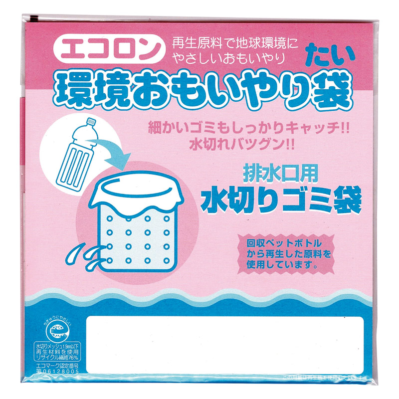 回収PETボトルを使用。 細かいゴミもしっかりキャッチ。 水切れバツグン。 エコマーク認定商品。 グリーン購入法適合商品。