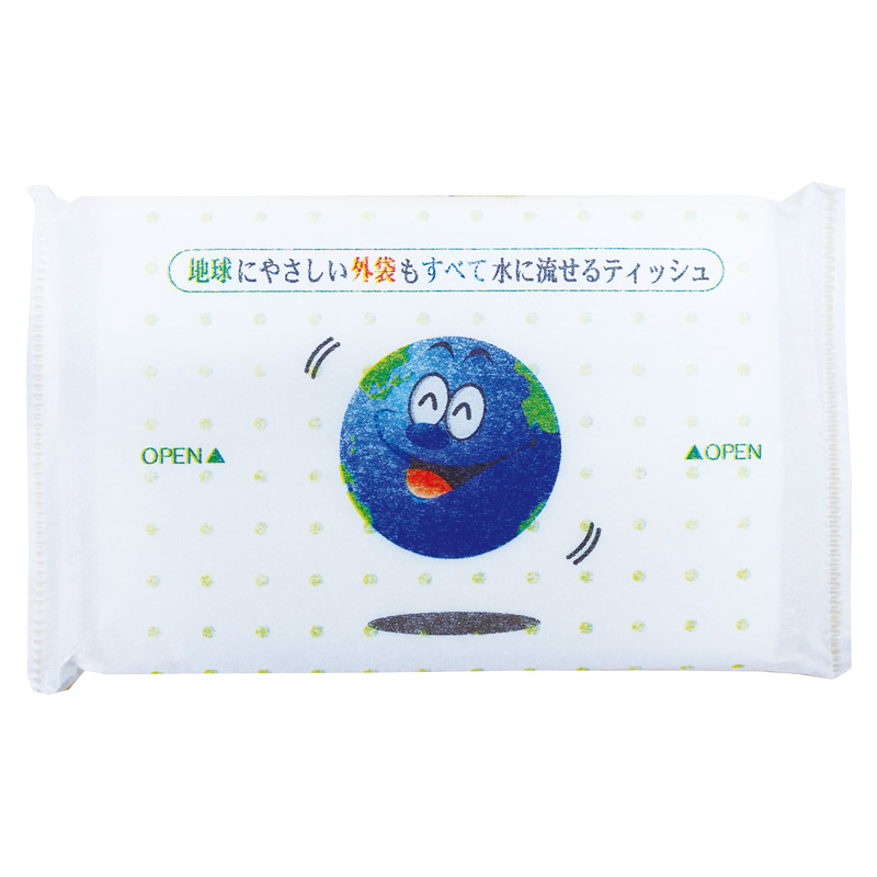 ティッシュ原紙も、外装パッケージも全て水に流せる、携帯用ポケットティッシュ。