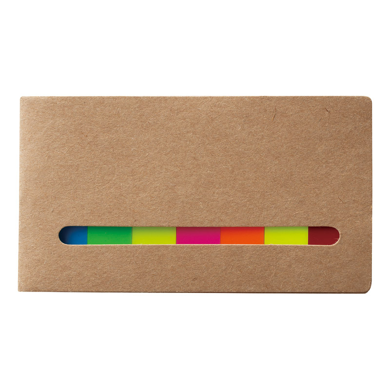 表紙は再生クラフト紙を使用したエコ商品。 用途によって使い分けられる7色のフィルム付箋セットです。