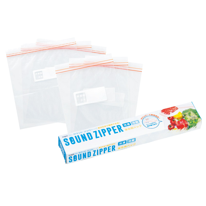 ジッパーを閉じると音が鳴り、しっかり閉じたかわかりやすい保存用パック。 Mサイズ3枚とLサイズ3枚がセットで使い分けできて便利。