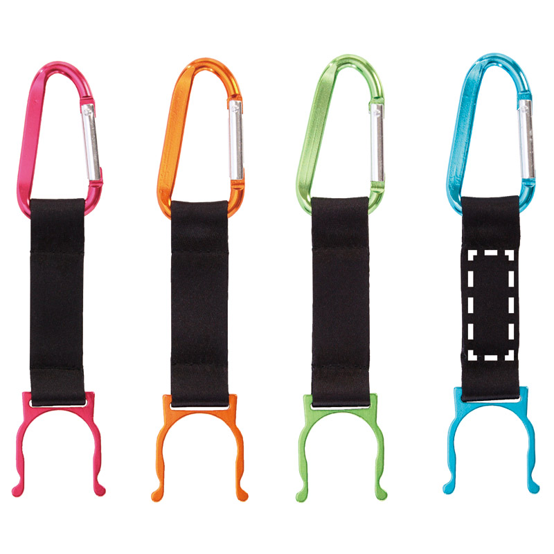 ペットボトルを気軽に持ち運べるボトルホルダー。 ボトルの首にはめ込むだけで着脱も簡単。 カラビナ付きなのでバッグやベルトにかけられます。