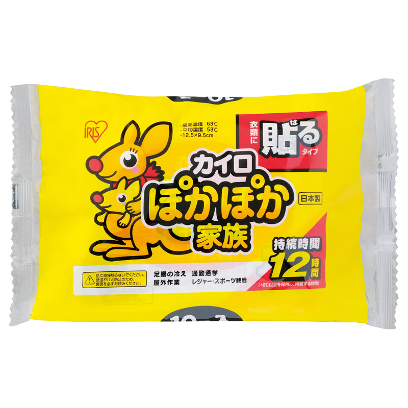 レギュラーサイズの衣類に貼るタイプのカイロです。 最高温度:63度平均温度:53度持続時間:12時間
