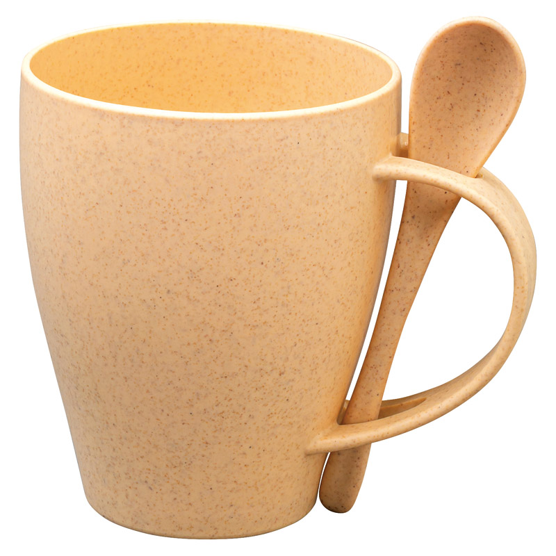スタイリッシュデザインのカップとスプーンのセット。 麦繊維配合のプラスチック素材で環境にも優しいです。
