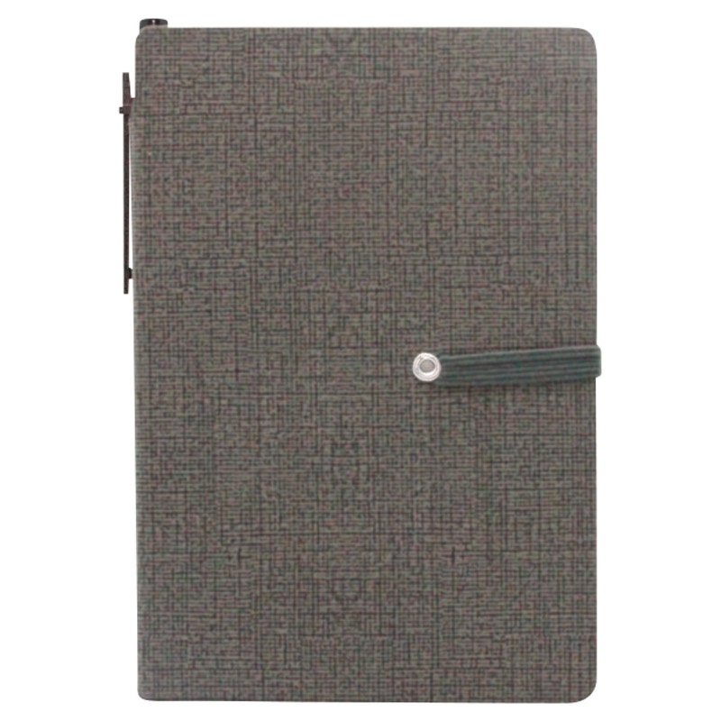 3種類の付箋、ノート、ボールペンがセットされた実用的なノートスタイルブック。 手触り感が良いPVCの表紙と、開かないようしっかりとホールドするゴムバンドがポイントです。