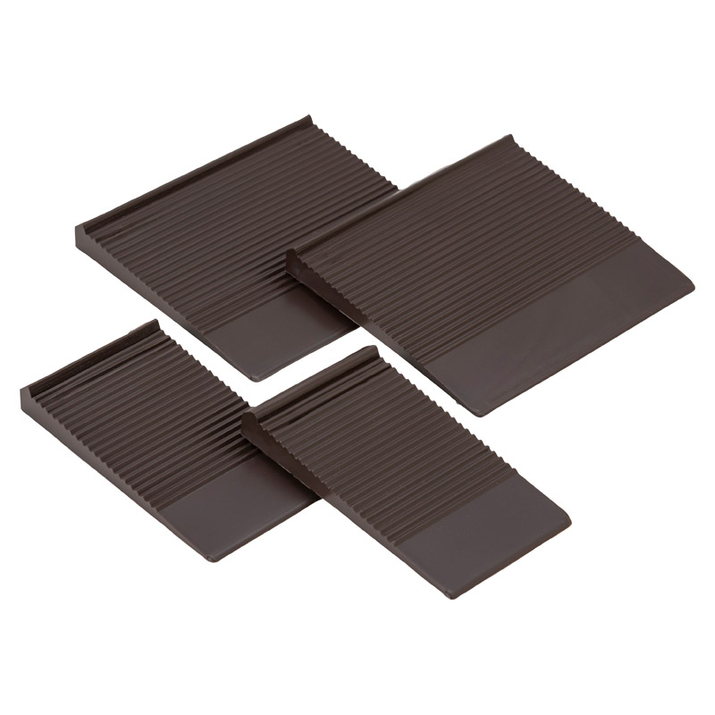 すぐに簡単にできる地震対策。 テレビ、タンスといった地震の時に倒れやすいものの下に敷くだけで転倒防止補助します。 使いやすい2種類のサイズに各2枚カットされていますので、開封後すぐにご使用いただけます。