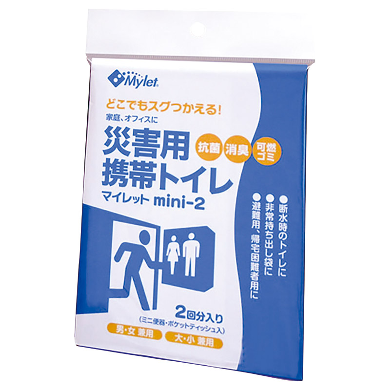 既存のトイレで使用可能。 抗菌性凝固剤を使い汚物を固めて可燃ごみとして処理できるコンパクトで長期保存可能な災害用トイレ処理セットです。 2回分入り。