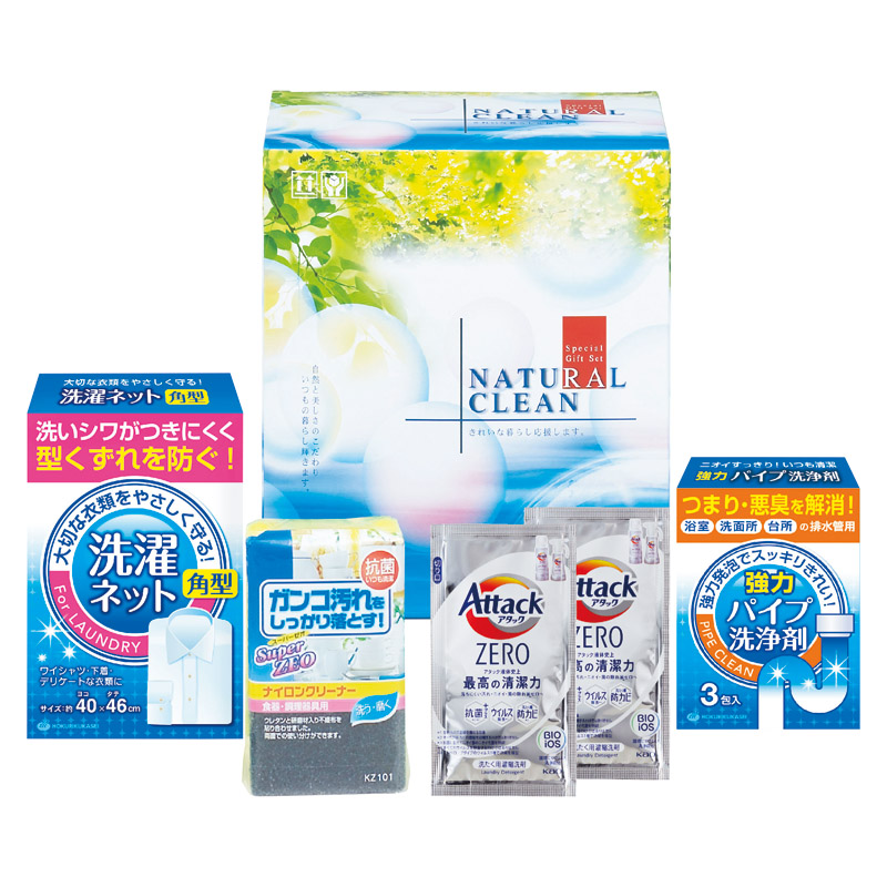 【内容】 洗濯ネット角型(約460×400mm)、パイプ洗浄剤(3包入)、抗菌ナイロンクリーナー×各1、花王アタックZEROワンパック(約10g)×2