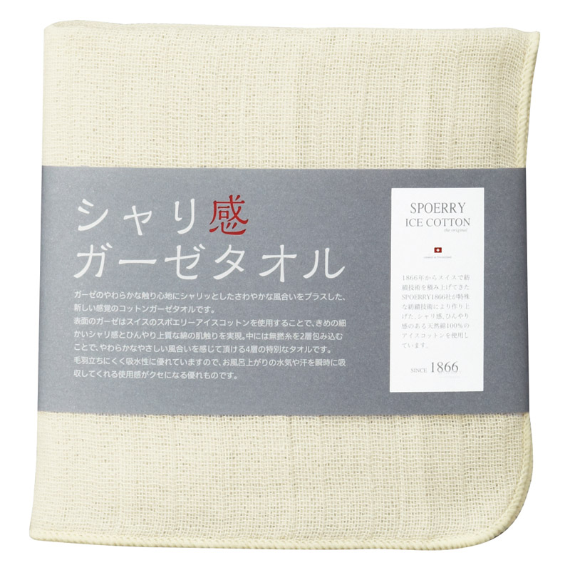 吸水性に優れ、清涼感があり、独特の使用感が楽しめます。 スイスのスポエリーアイスコットン(R)を使用した、夏場にお勧めのシャリ感ガーゼタオルです。