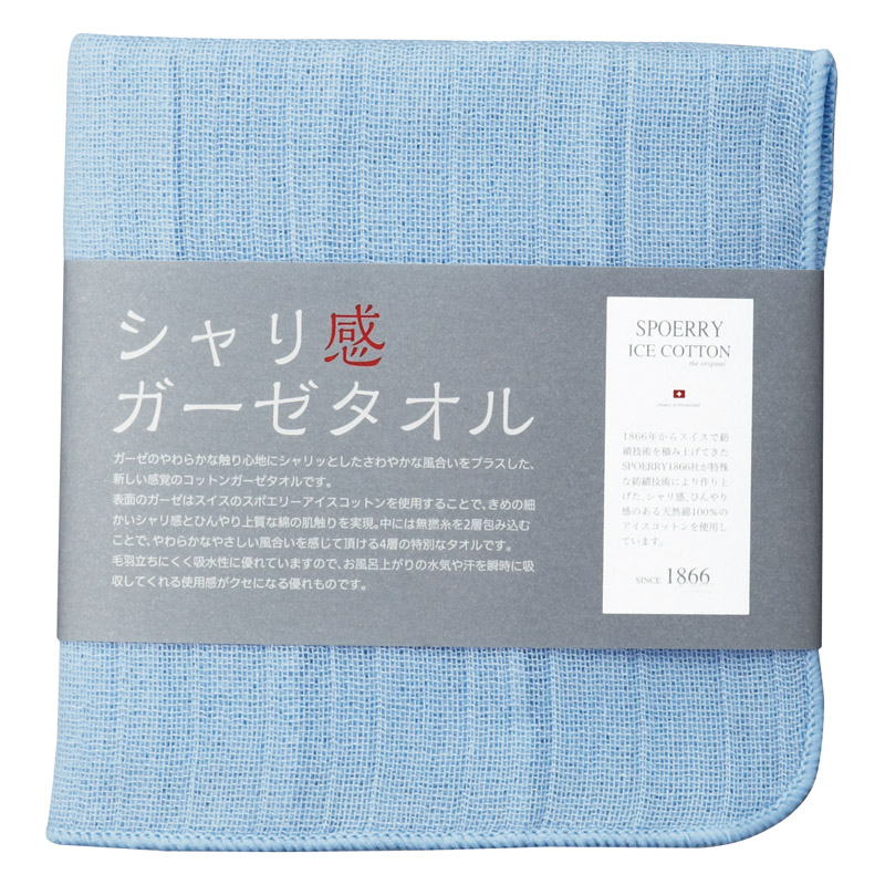 吸水性に優れ、清涼感があり、独特の使用感が楽しめます。 スイスのスポエリーアイスコットン(R)を使用した、夏場にお勧めのシャリ感ガーゼタオルです。
