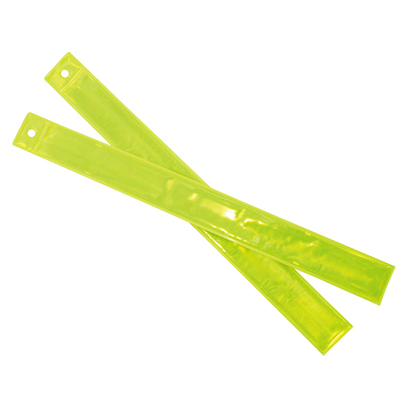 腕や足首などにワンタッチでくるっと簡単に巻き付けられる高輝度反射材を使用したリストバンドです。 遠くからでも光を反射して視認性が高くなります。