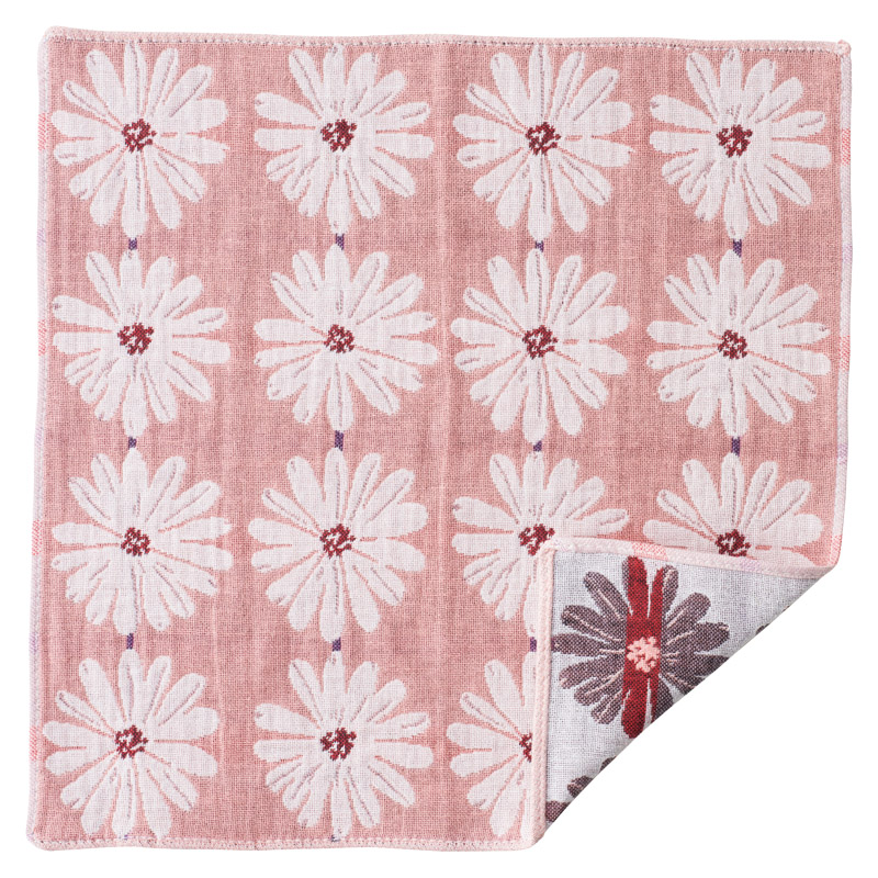 ポケットやかばんに入れやすいコンパクトサイズ。 薄手だけど吸水性に優れた丈夫でやわらかなハンカチです。 先染めした糸を使用しているので表と裏で違った色合いが楽しめます。