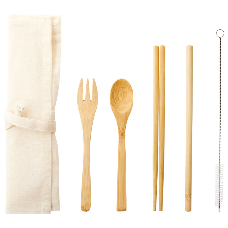 【内容】 袋(展開時:約255×135mm)、スプーン、箸、フォーク、ストロー、ストローブラシ×各1