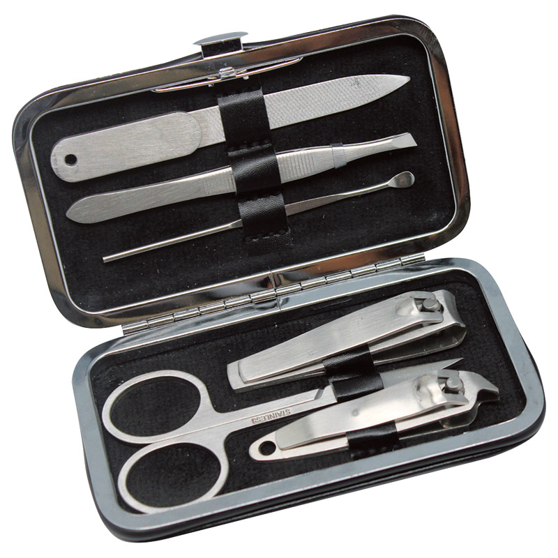 【内容】 ケース(約68×110×26mm)、爪切り(大)、爪切り(小)、毛抜き、耳かき、ハサミ、爪やすり×各1
