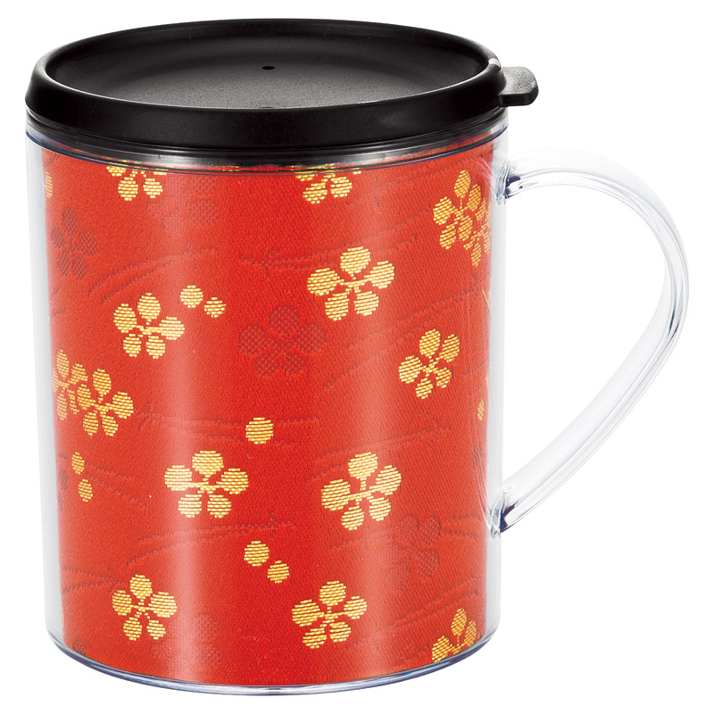西陣織に彩られた本物志向のマグカップです。 2重構造なので温度を保ちやすく、フタ付なので衛生的で便利!