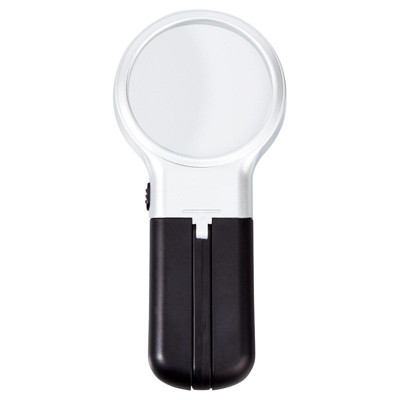 暗所でも見やすいライト付きルーペ。 スタンド式に変形でき、2か所で角度調整できます。