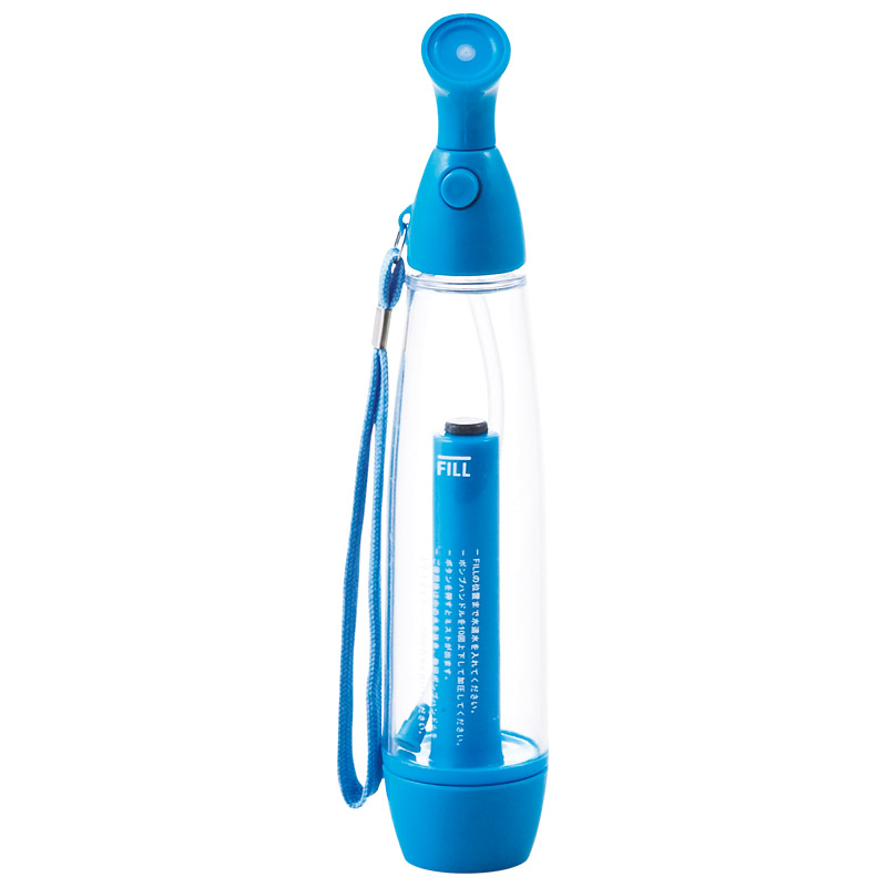 手動ポンプで圧縮した空気を利用してミストを発散するエコで携帯に便利なハンディクーラーです。