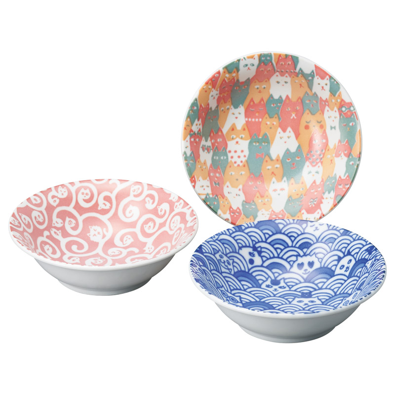 人気デザイナー佐山愛による昔なつかしい柄にネコモチーフのかわいいうつわです。